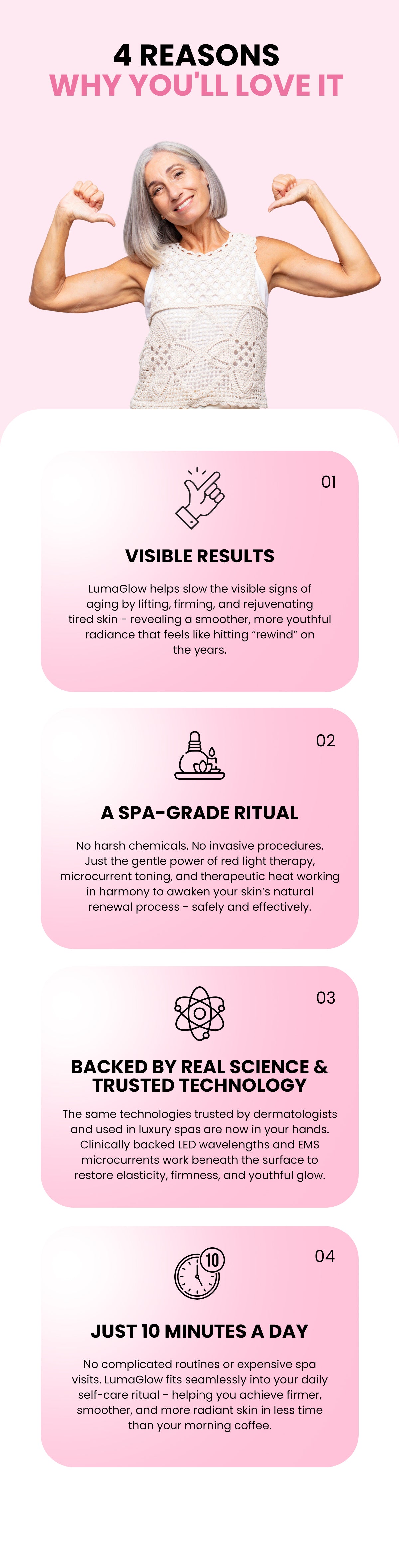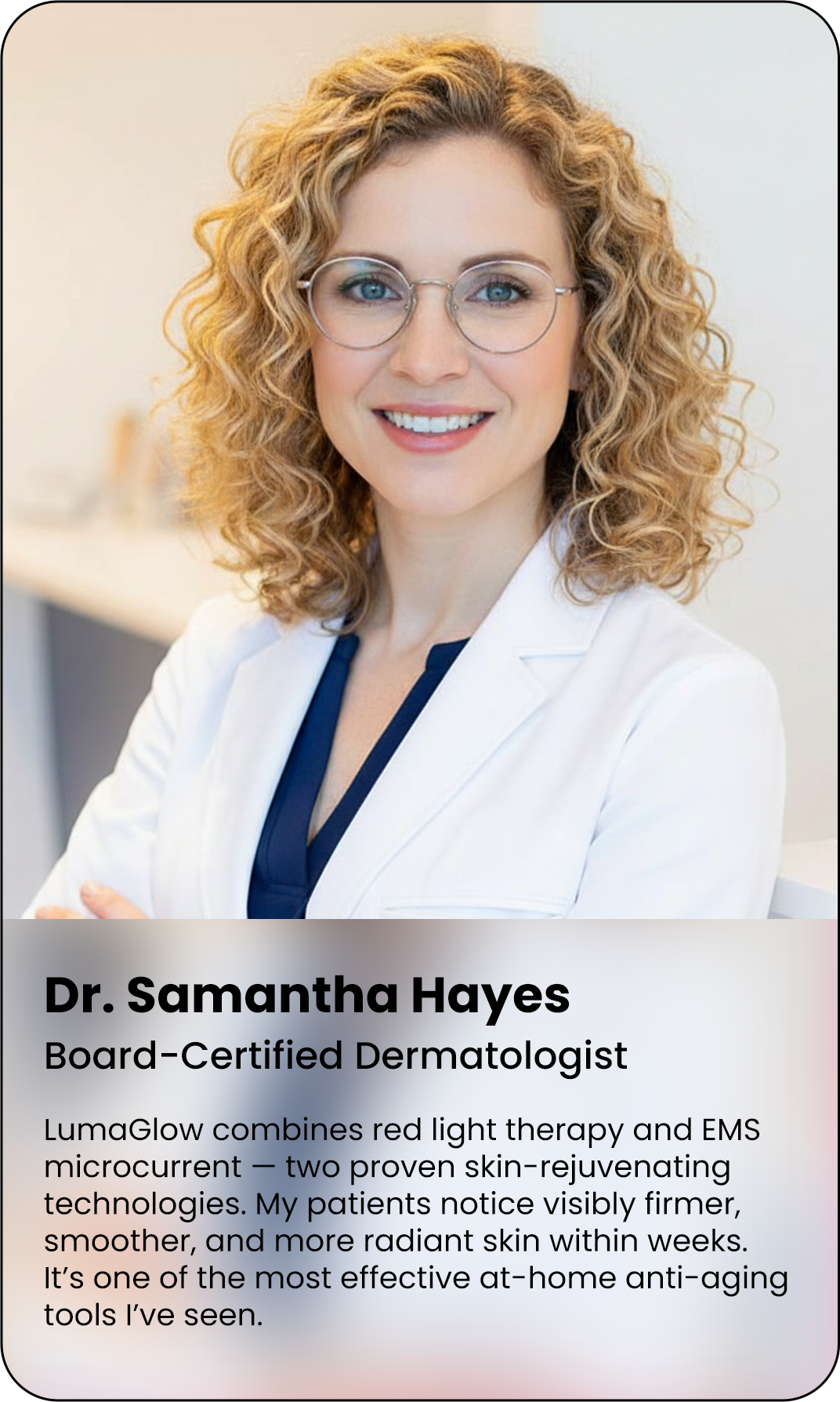 Results based on a consumer perception survey of 124 women, ages 40–65, after 4 weeks of consistent LumaGlow use (5x per week).
