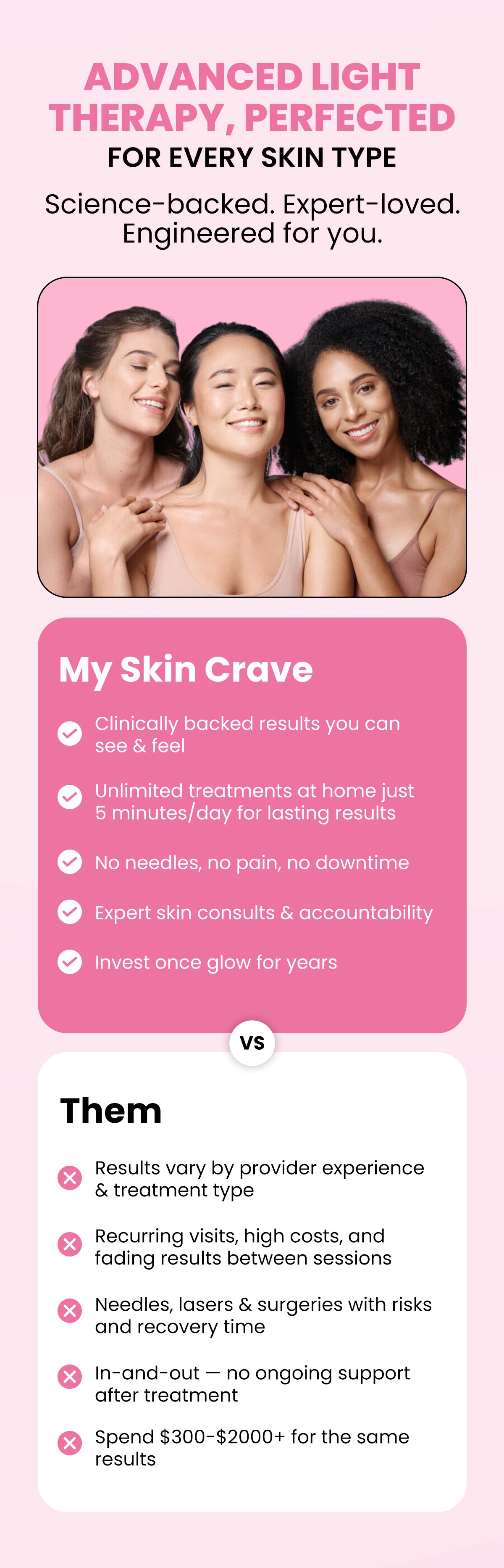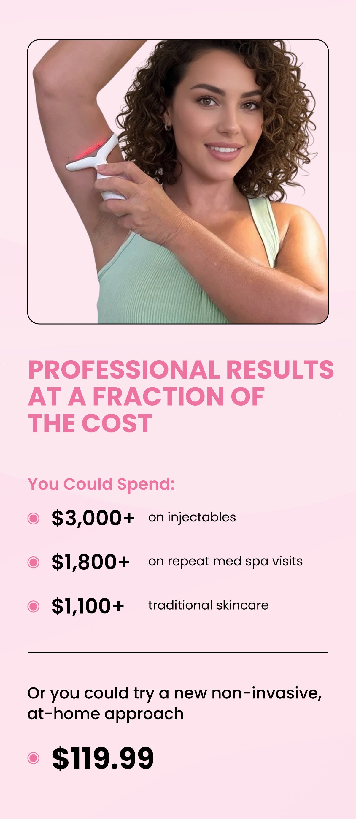 The LumaGlow offers substantial long-term savings compared to regular visits to your treatment center. You'll have unlimited access to professional-grade treatments at home or anywhere you travel for a fraction of the price.